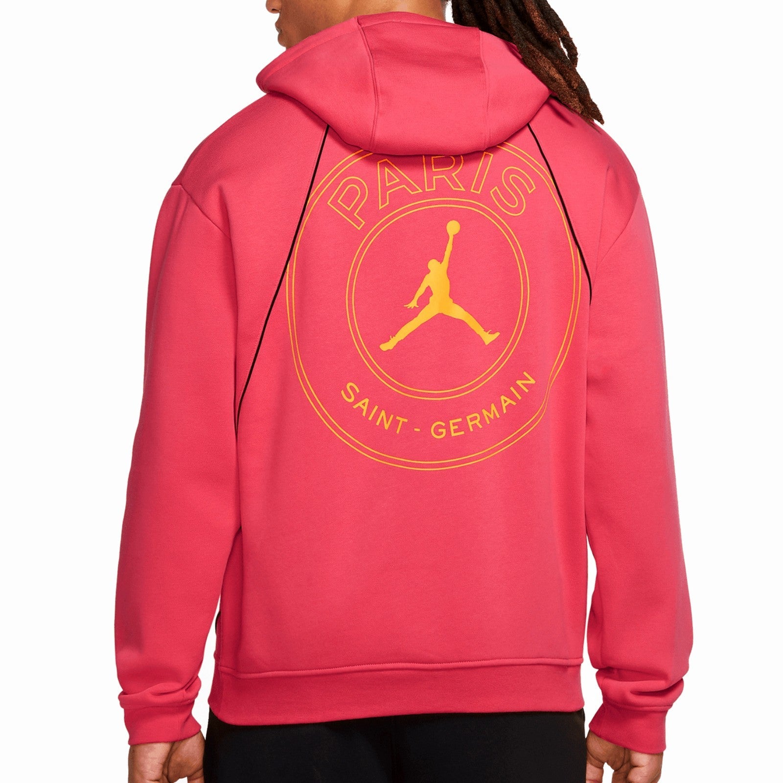 Authentic Jordan x PSG casual fleece Fanswear presentation set for new 2023 winter/spring soccer season. This elegant light red/black version of this casual set features light red fleece hoodie and matching black sweat pants, (both with yellow logos, crest and lines), and the stunning combination of PSG and the iconic Jordan's logo. Made out of cotton (80%) and polyester, great comfort for your leisure and sports time. Buy it now and show your support for PSG and stars like Messi, Neymar and Mbappé!