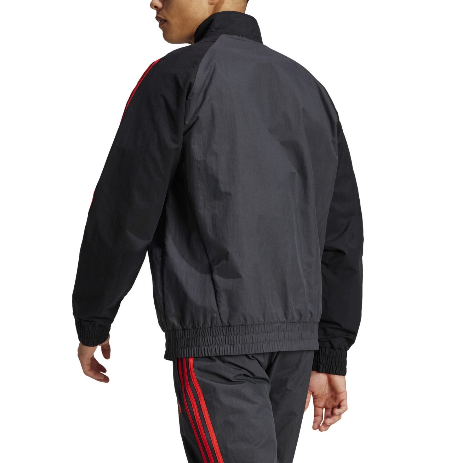 Authentic River Plate training presentation tracksuit for 2024 argentinian winter/spring soccer season. Designed by technical sponsor Adidas for los Millionarios, this modern-looking set features black/dark grey woven jacket and matching dark grey pants, both with intense red details, crest, logo and stripes. Wear with pride and show your support for Argentina and River Plate everywhere you go!